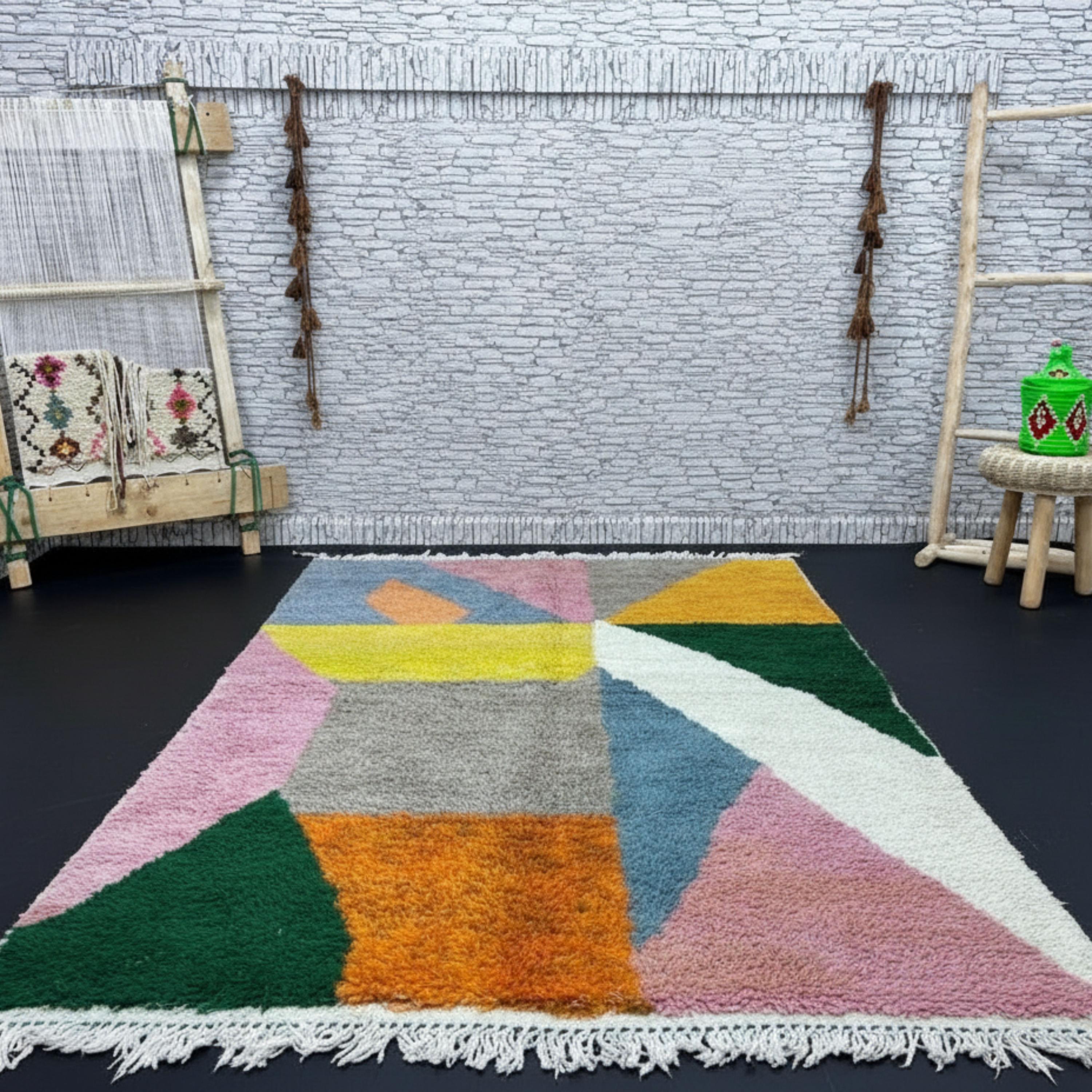 Colorful Moroccan Rug – Handmade Wool Area Rug 6x9, Modern Abstract Berber Carpet, Custom Beni Ourain Style Rug for Living Room or Bedroom