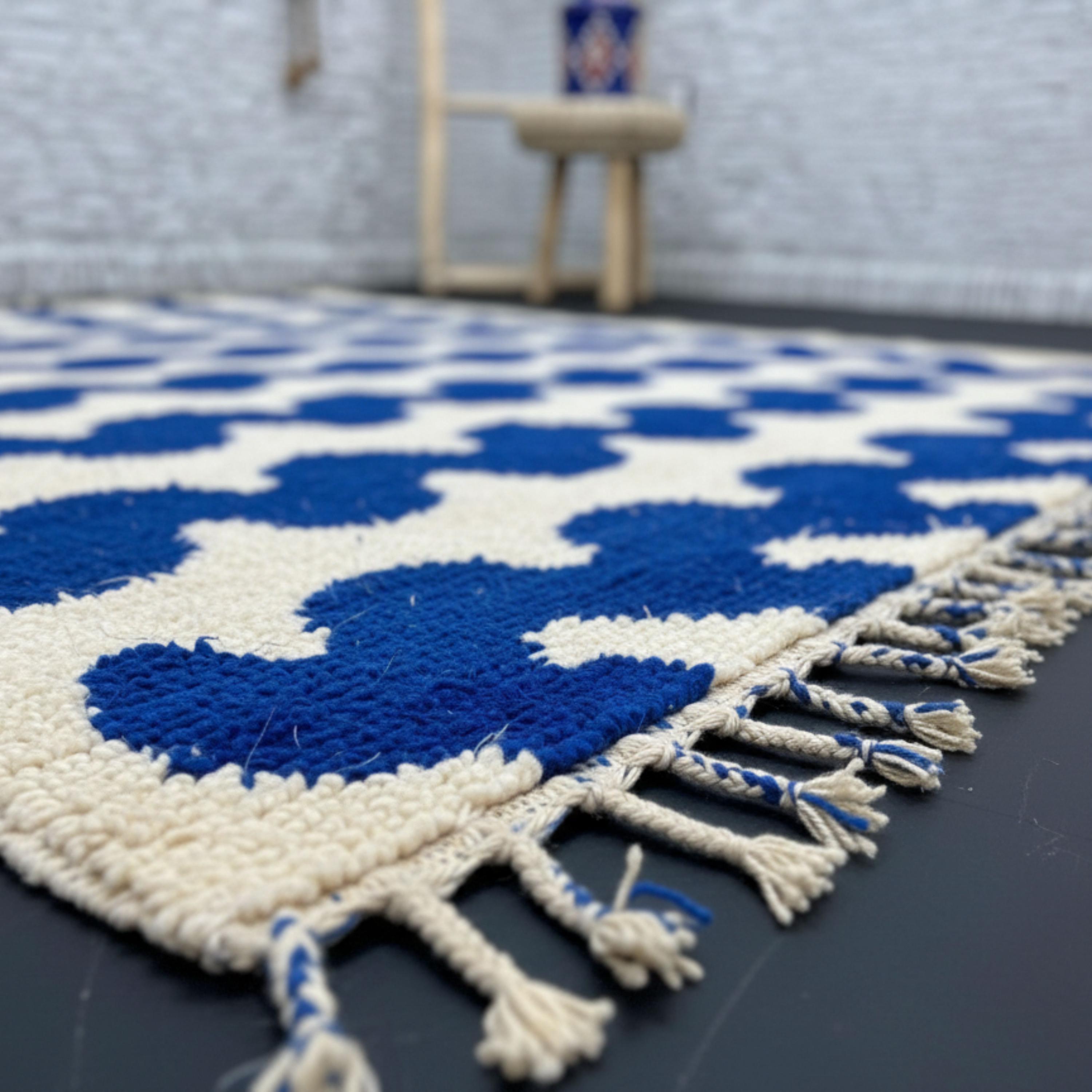 Gorgeous Beni Ourain Moroccan Rug – Handmade Blue Wool Carpet – Modern Berber Azilal Rug – Boho Living Room Area Rug – Handwoven Moroccan Decor