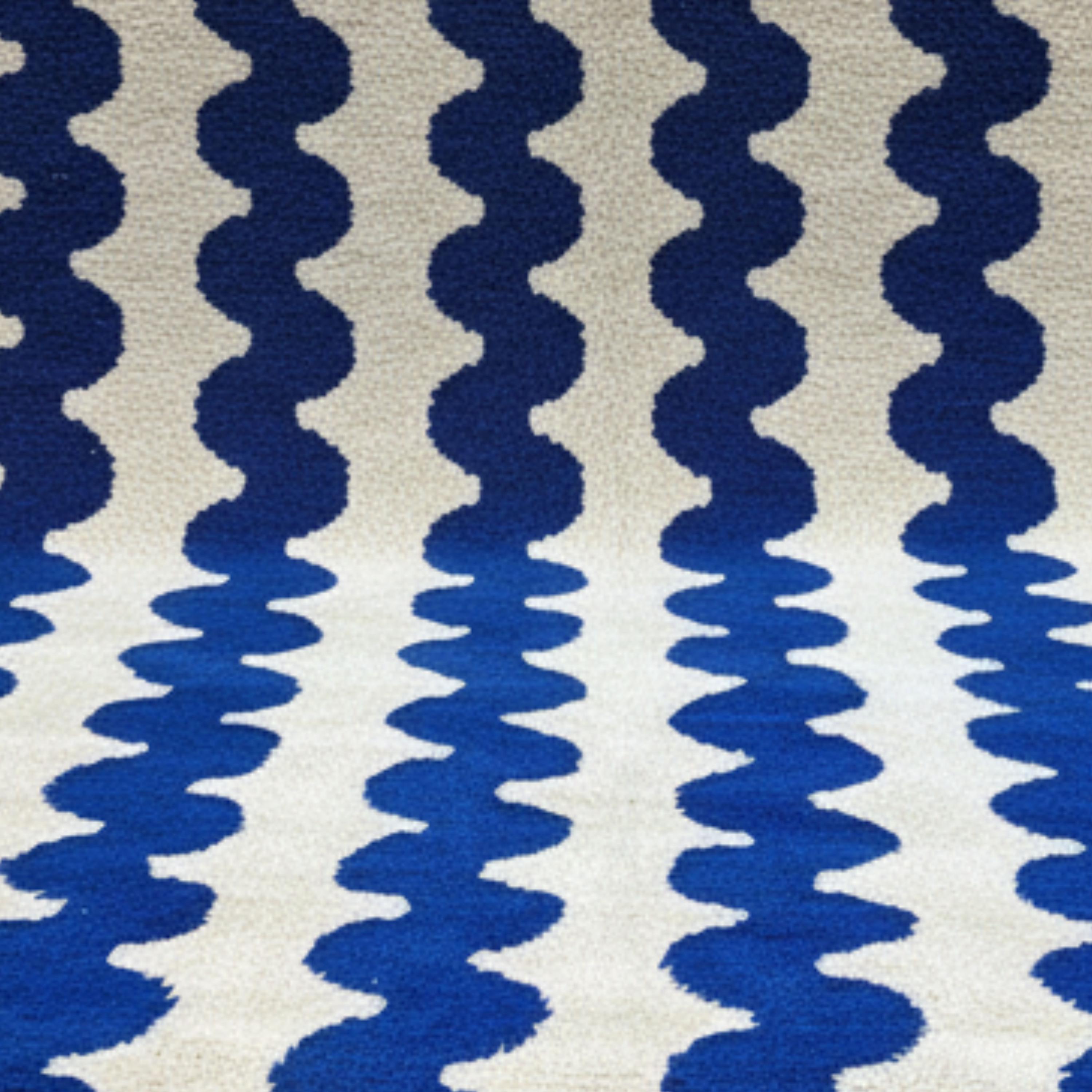 Colors: Cream base with bold cobalt blue waves
