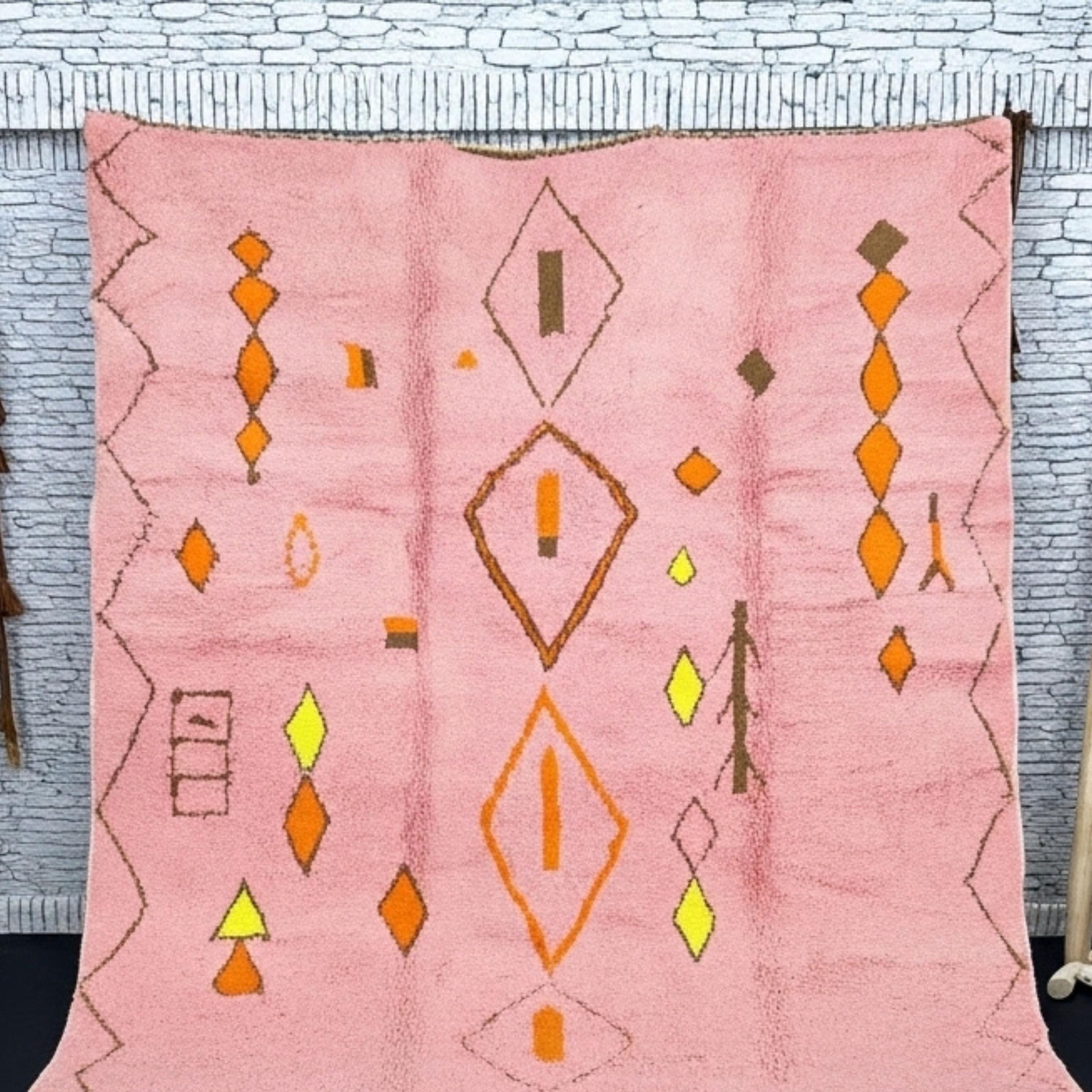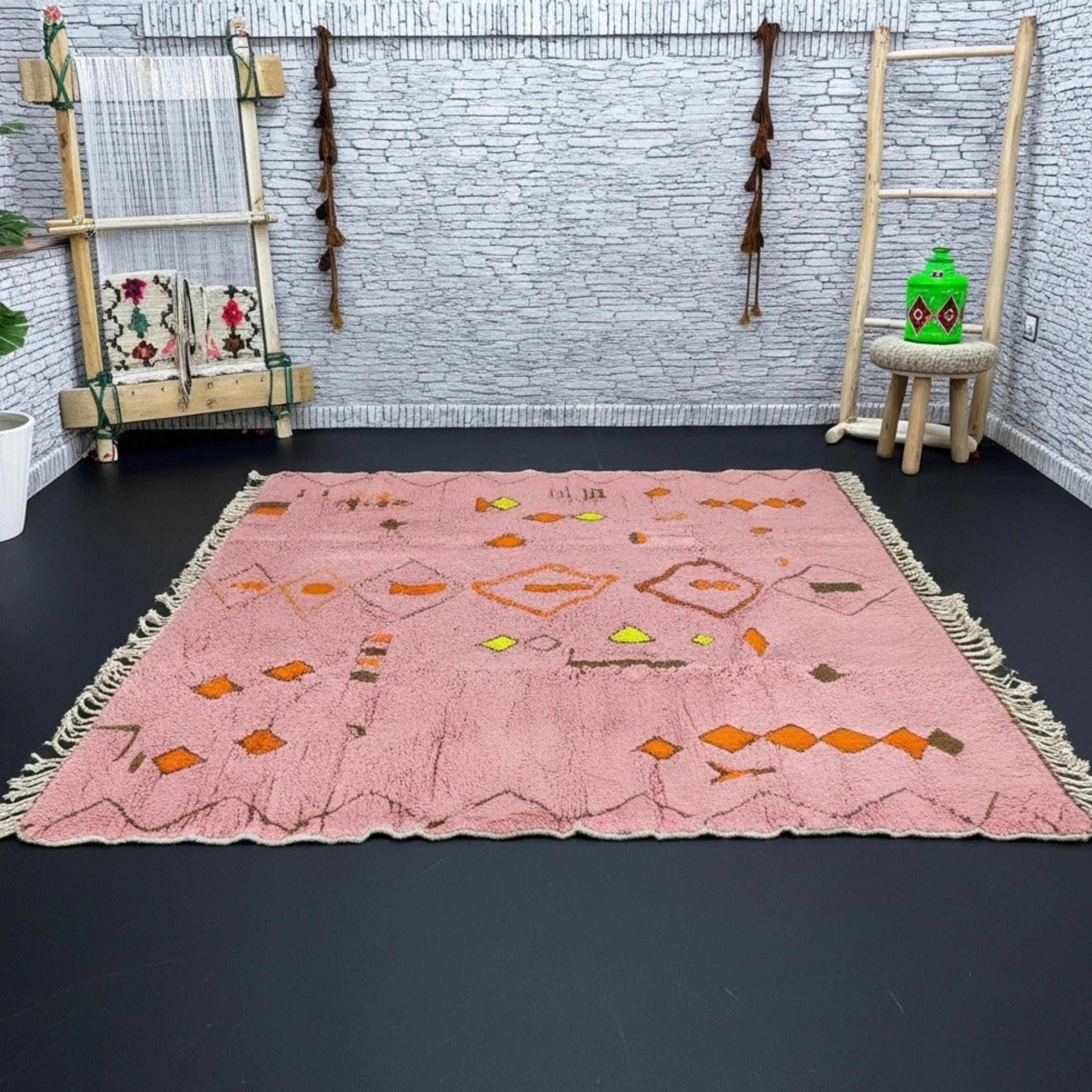 pink beni ourain, moroccan wool rug, handmade berber carpet, custom boho rug, wool area carpet, soft home decor, modern living rug, atlas mountain rug, handmade wool decor, geometric beni ourain, moroccan pink rug, artisanal home piece, custom color rug