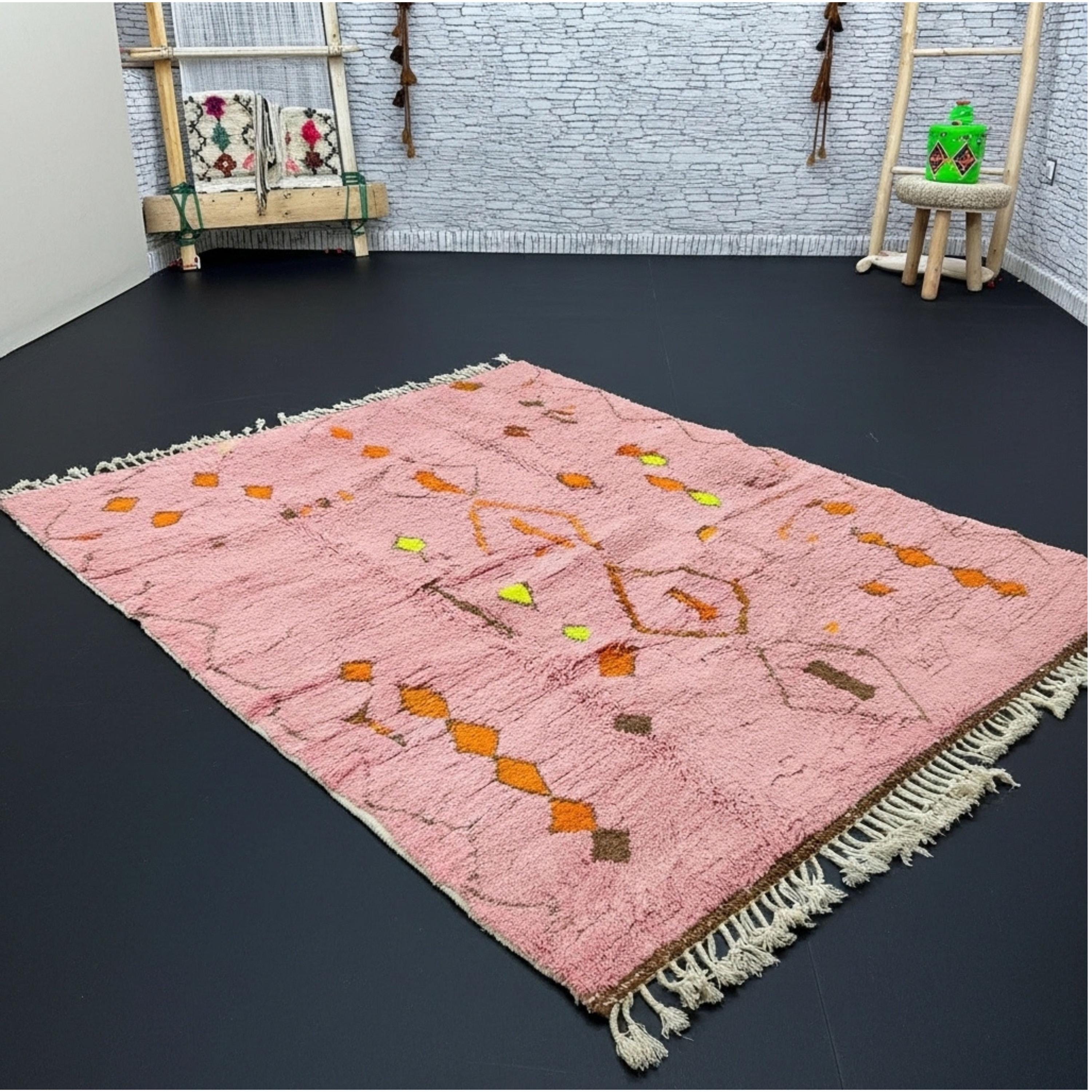 Handmade Pink Beni Ourain Wool Rug – Authentic Moroccan Berber Carpet – Custom Wool Area Rug for Living Room – Modern Boho Home Decor Welcome to Bazaarloom...