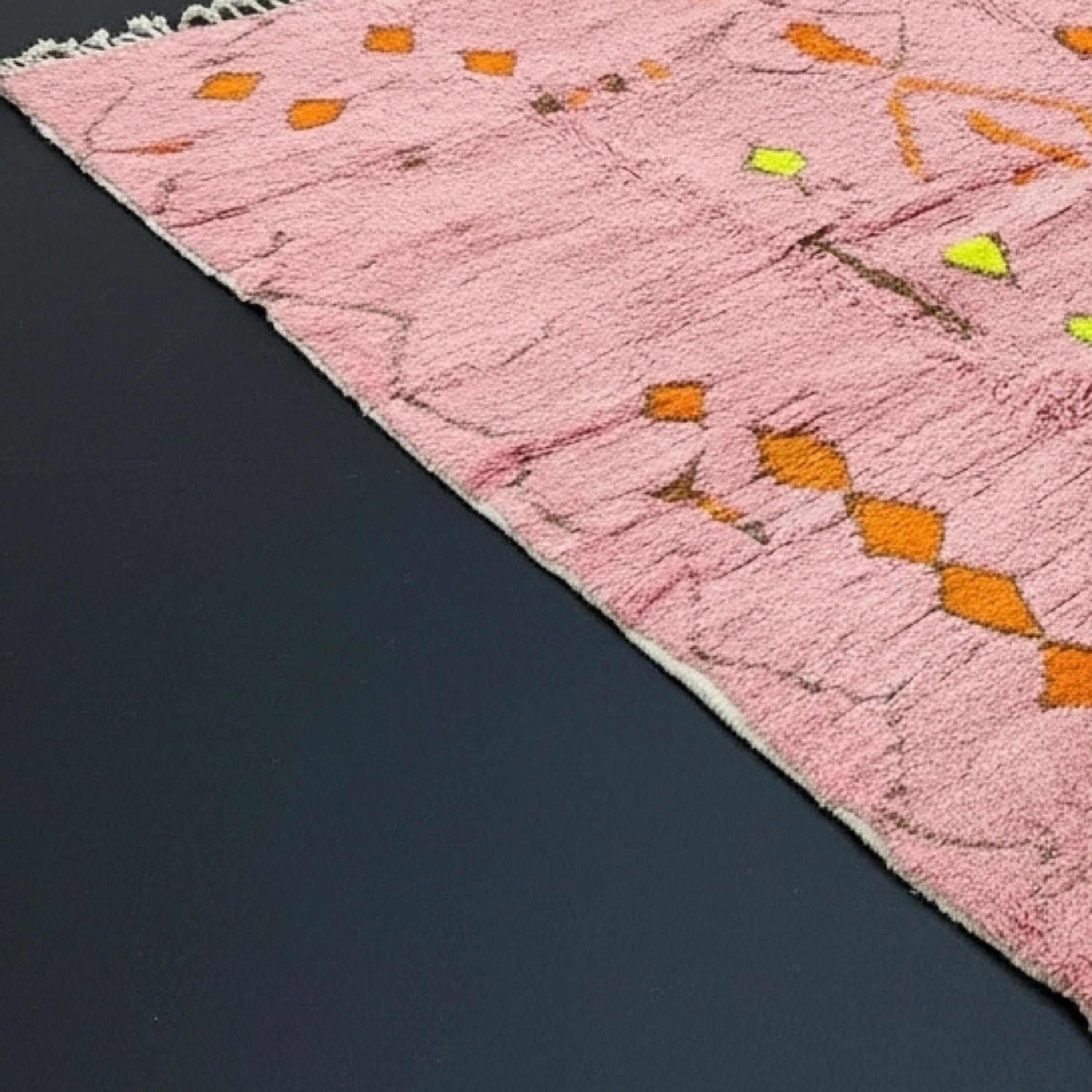 Each rug tells a story through its unique Berber geometric patterns, passed down through generations. Because every rug is individually handwoven, slight variations in color or design enhance its authenticity and one-of-a-kind appeal. This pink Moroccan rug offers timeless beauty, warmth, and texture that elevate any interior style — from bohemian and minimalist to contemporary and cozy.