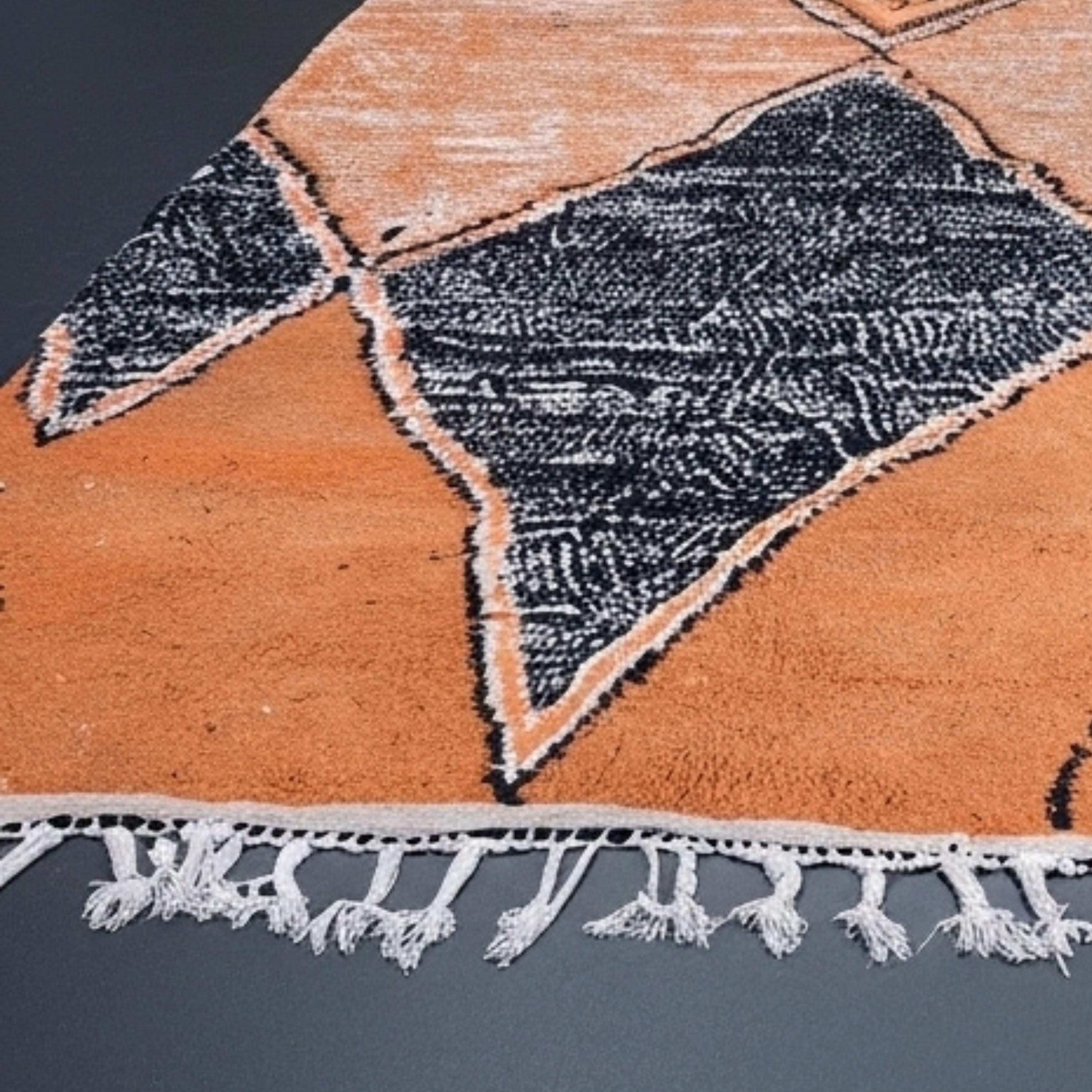 orange beni ourain, moroccan wool rug, handmade berber carpet, custom wool runner, boho living room rug, large area carpet, authentic moroccan rug, modern home decor, atlas mountain rug, handmade wool decor, geometric beni ourain, warm tone rug, custom color rug