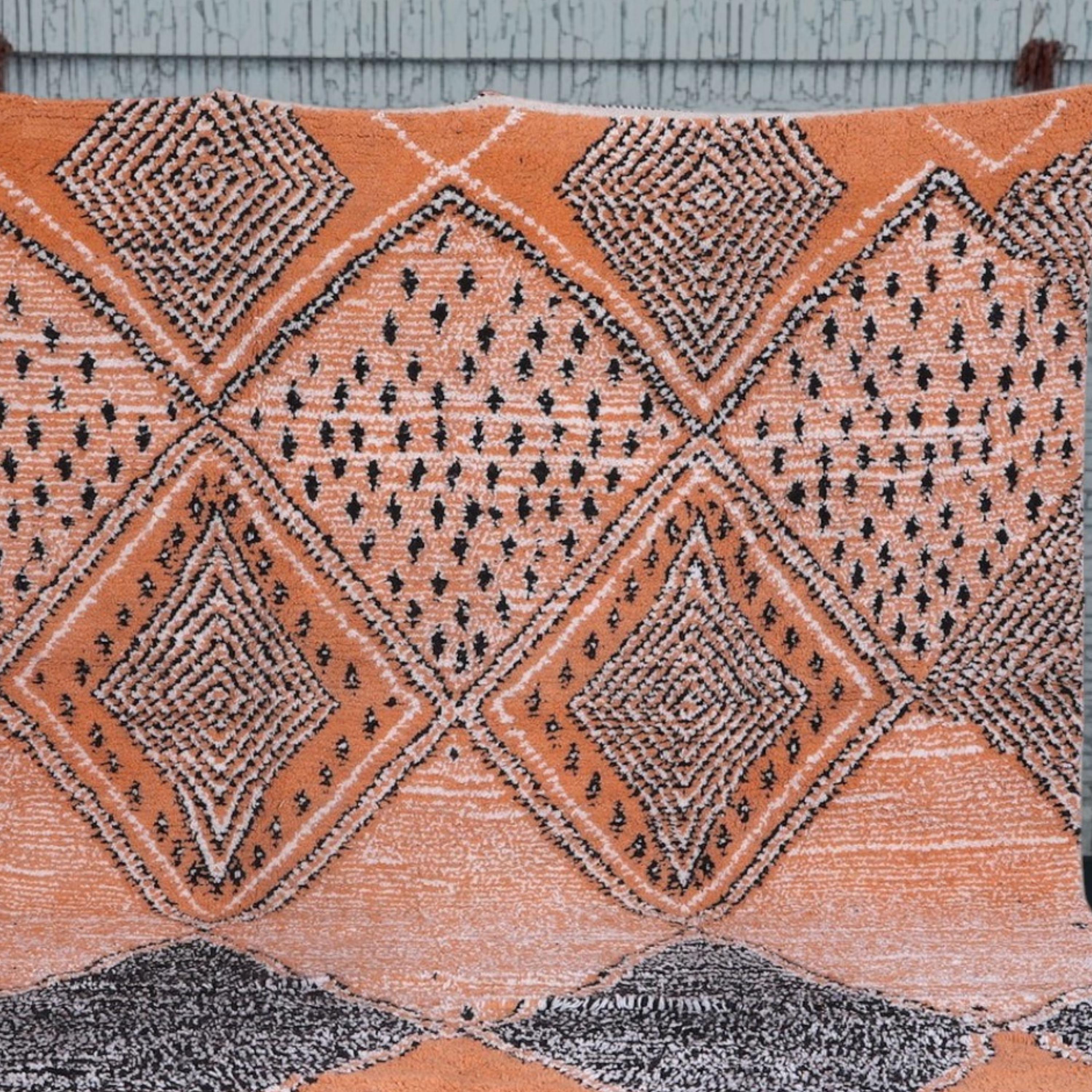 🧡 Warm orange tones paired with authentic Beni Ourain geometric patterns