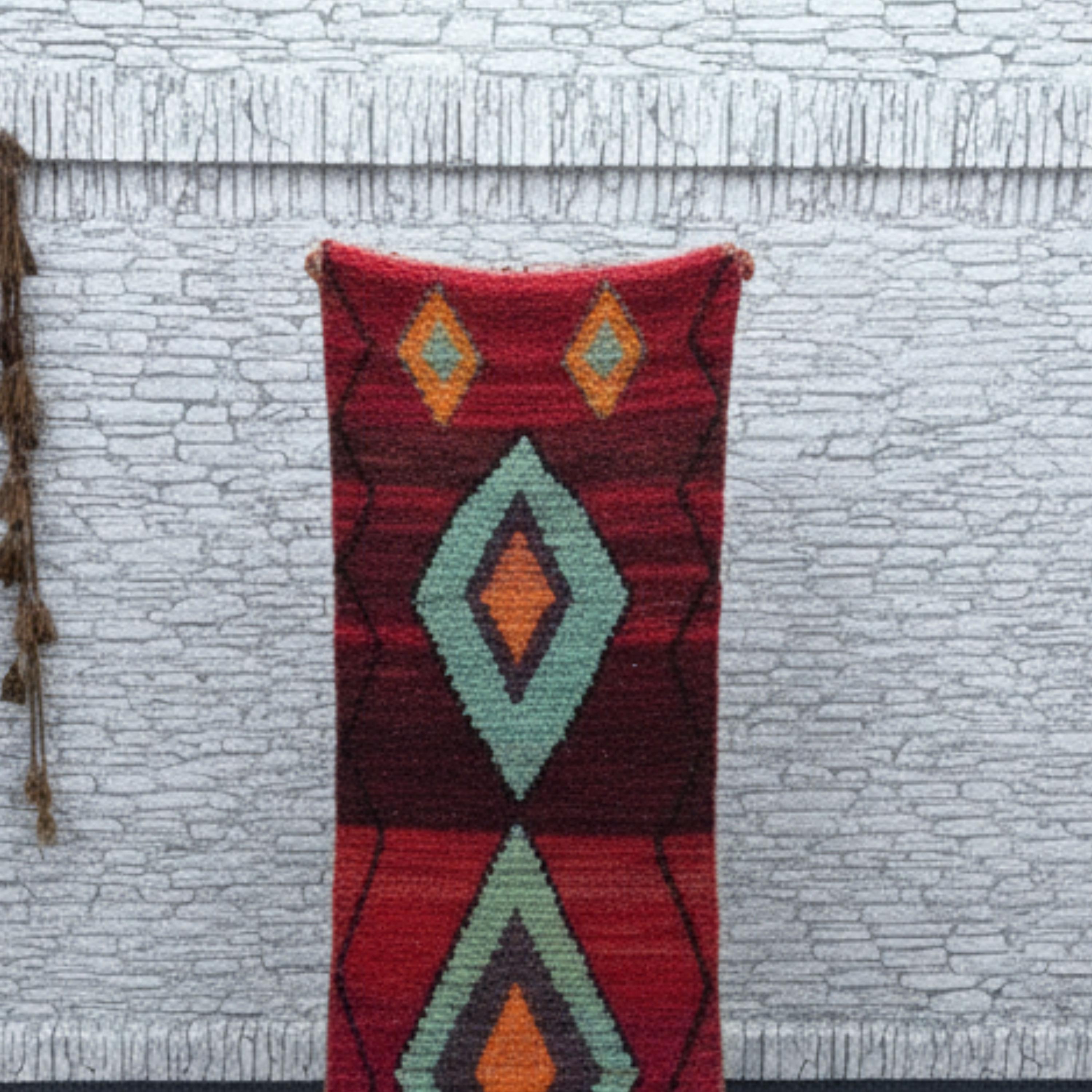 Perfect for hallways, entryways, kitchens, or bedrooms, this rug is made from 100% natural wool, offering durability and comfort underfoot. Its soft texture and colorful design make it a stunning accent piece that complements boho, modern, and eclectic interiors.
